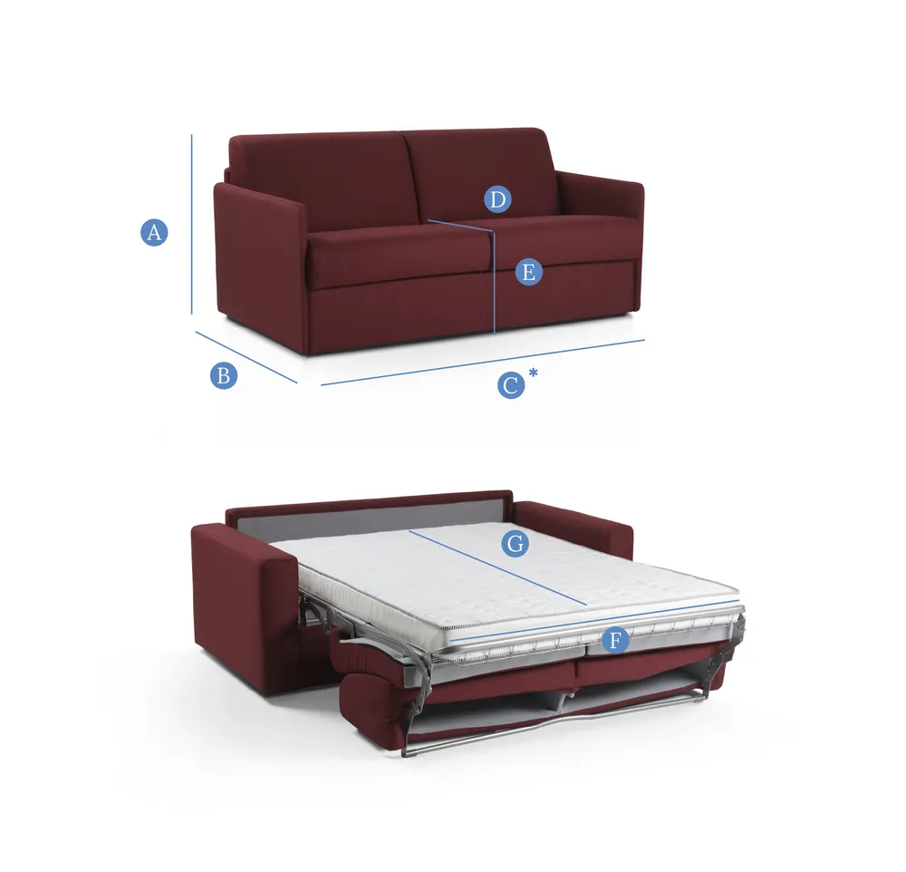 3 locuriA = 88cm | B = 98cm | C* = 164cm | D = 56cm | E = 48cm | F = 140cm | G = 190cm
