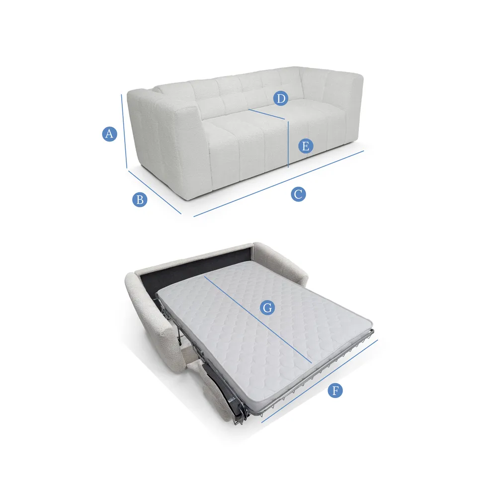 3 locuriA = 78cm | B = 105cm | C = 215cm | D = 58cm | E = 48cm | F = 140cm | G = 190cm